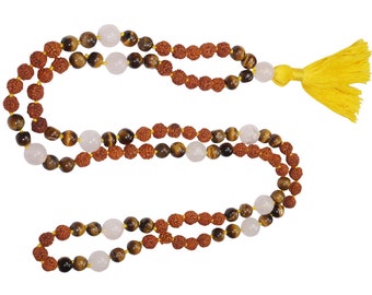 RELATIONSHIPS Yellow Citrine Mala Beads Rudraksha Prayer Chakra Stone Japamala Yoga Necklace
