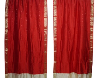 2 Indian Sari Silk Curtain Red Boho Decor Curtains Door Drape 84x44
