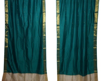 Home Decor Curtains Teal Green Window Draperies Vintage Sari Panel Pair