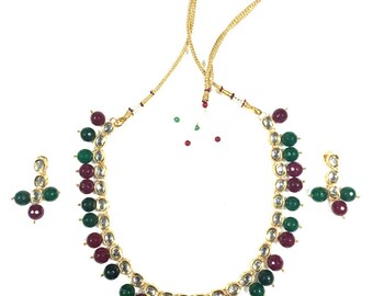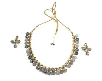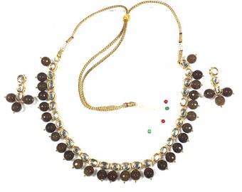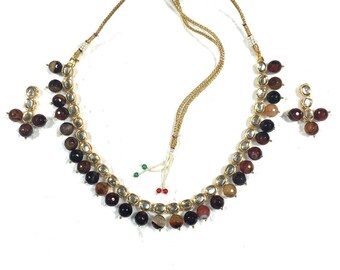 Indian Statement Necklace Antique Gold tone Beads Studded Traditional Kundan Set