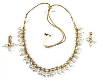 White Pearl Polki Kundan Choker Necklace Set Reversible Jewelry For Womens Fashion