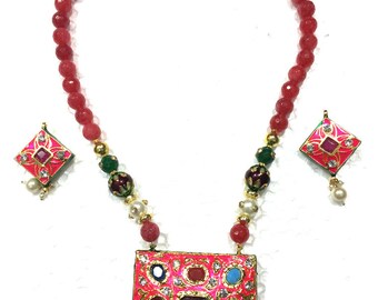 Womens Indian Necklace Pendant Pink Reversible Tourmaline Jewelry Sets