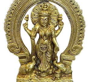 Spiritual Vintage Standing Gaja Lakshmi Brass Statue with Kirtimukha a Top Zen Decor